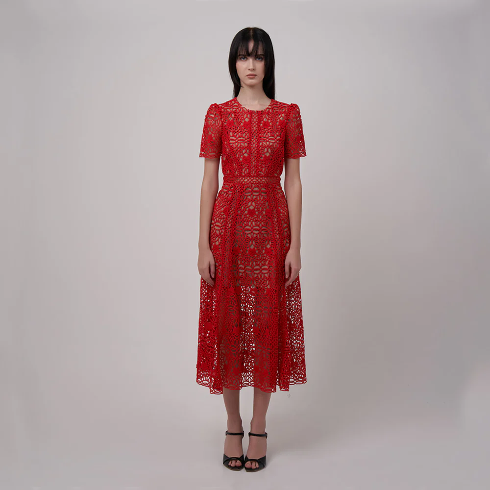 Outfit kemerdekaan dengan dress selanjutnya adalah perpaduan dress merah dengan aksesori putih, seperti tas dan sepatu. Kesan bold, berani, dan elegan akan terpancar dari perpaduan ini.