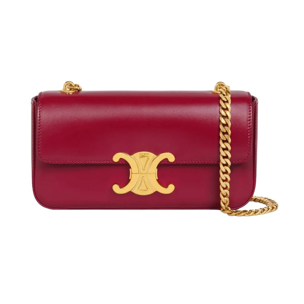 Chain Triomphe Shiny Calfskin Shoulder Bag Red Ghw