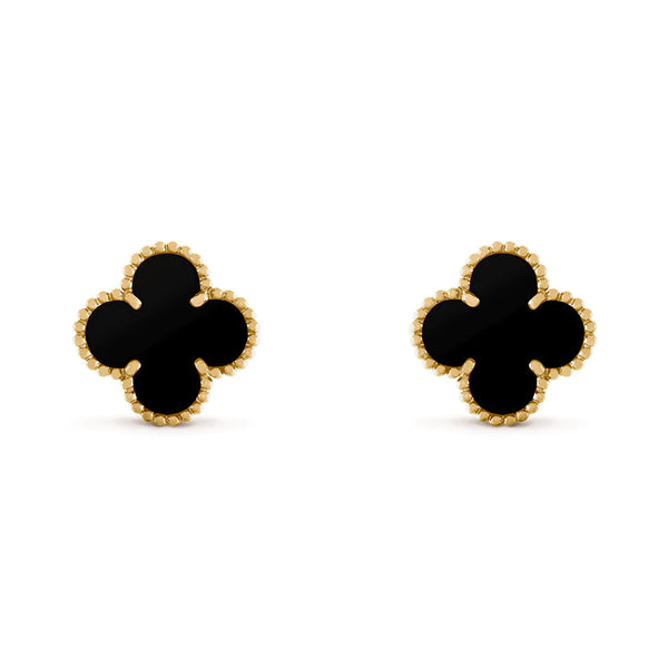 Vintage Alhambra Earrings Yellow Gold, Onyx