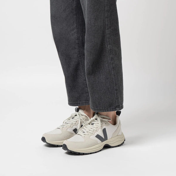 Pertama dirilis pada tahun 2019, Venturi Low Top dari Veja menampilkan siluet running shoes dengan look yang kasual dan sporty. Seperti sepatu Veja lainnya, sneakers ini dirancang menggunakan material katun yang dilapisi resin ramah lingkungan. Venturi juga dilengkapi dengan outsole tebal yang memiliki traksi tinggi.