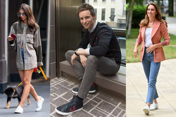 Emily Ratajowski, Eddie Redmayne, dan Kate Middleton mengenakan sepatu Veja (sumber foto : https://www.standard.co.uk/)